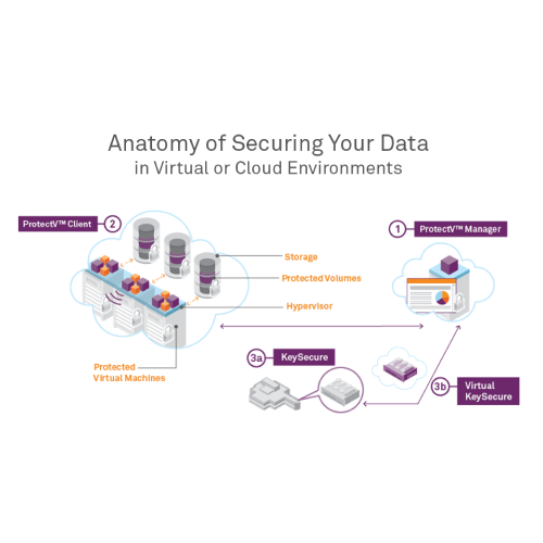 SafeNet ProtectV представляет собой решение, осуществляющее прозрачное шифрование виртуальных машин, расположенных в датацентре или облачной инфраструктуре. Агент, устанавливаемый в гостевую операционную систему, представляет собой загрузчик и набор драйверов, обеспечивающих процедуру шифрования системных разделов, разделов с данными и файла подкачки (swap). Особенностью реализации решения является то, что ключи шифрования хранятся изолировано от среды эксплуатации – в решении SafeNet KeySecure, что позволяет реализовать не только стойкую криптографическую защиту данных, но и соответствующий уровень контроля доступа к ключам шифрования.
